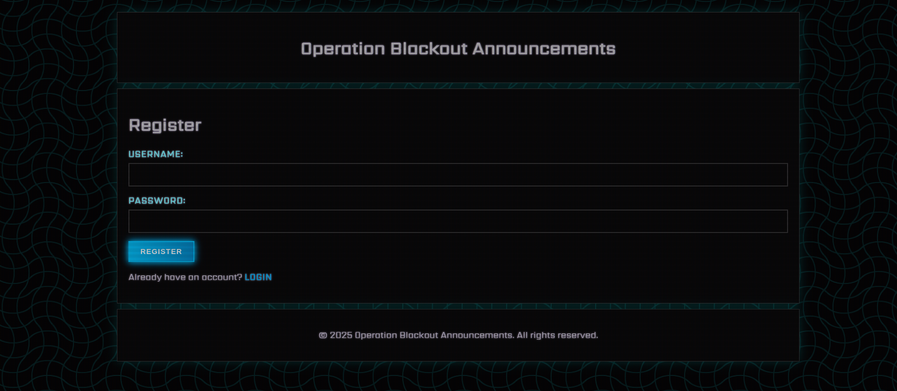 Upon registering and logging in, we are greeted with an announcements page that contains many posts. We are also able to create new posts.