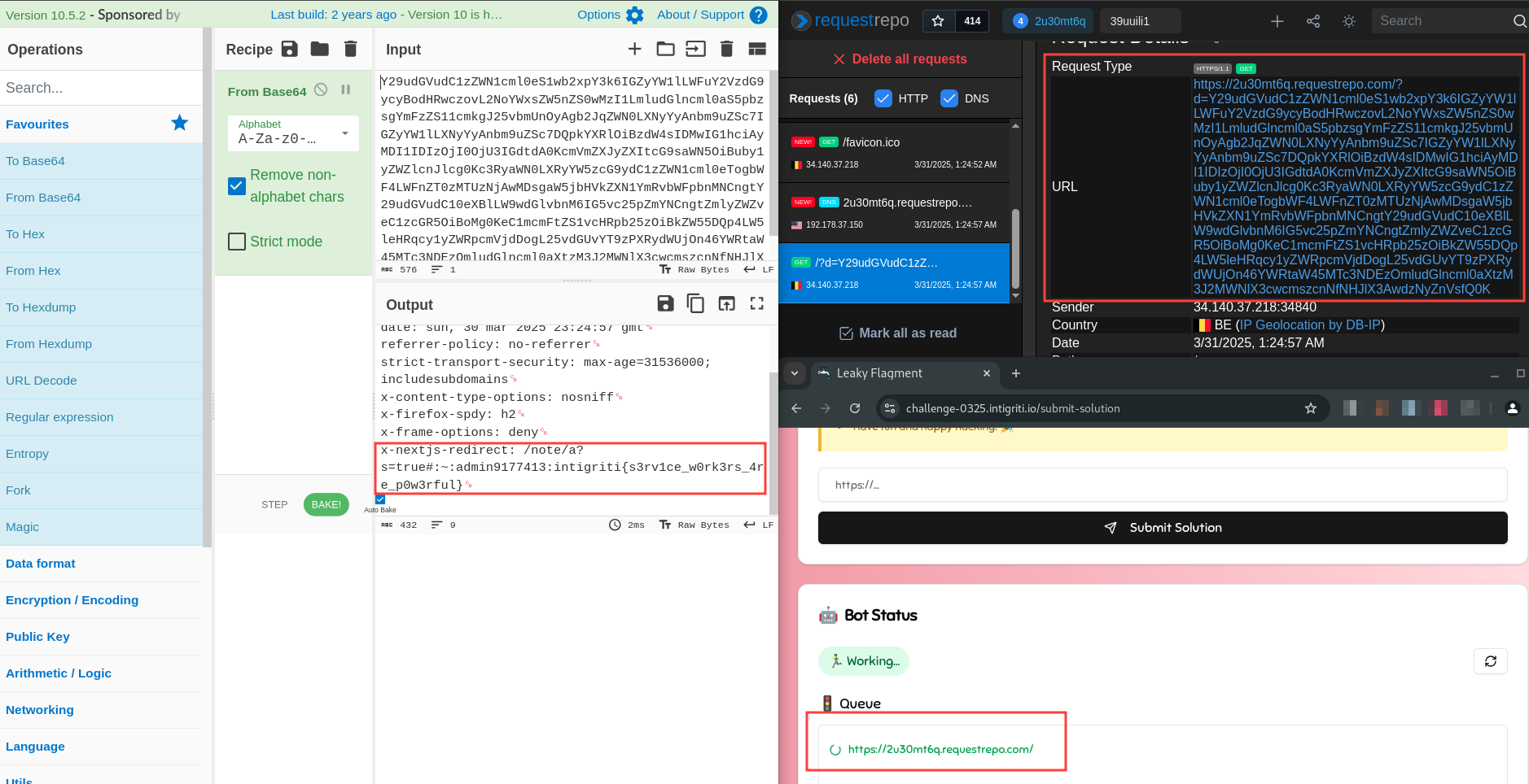 Your goal is to leak the Botās flag to a remote host by submitting a URL, below are the sequence of actions the bot will perform after receiving a URL: