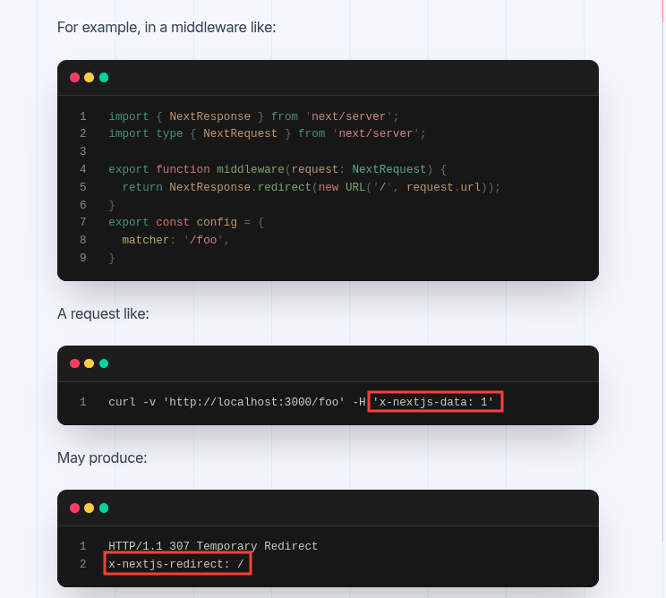 x-nextjs-data: 1header in requests, the server may respond with headers like x-nextjs-redirect, even on redirects where other middleware headers are suppressed.