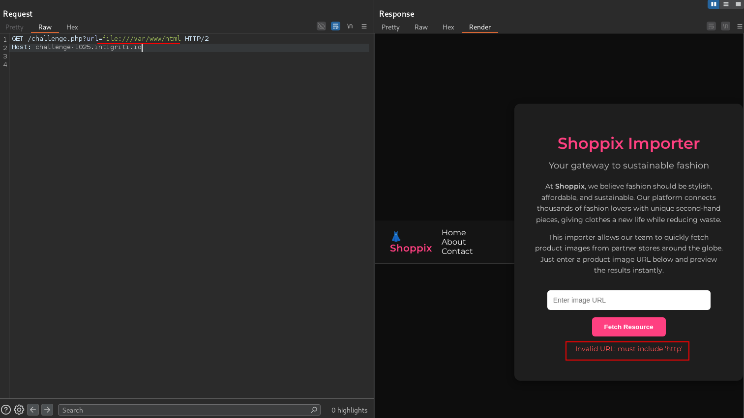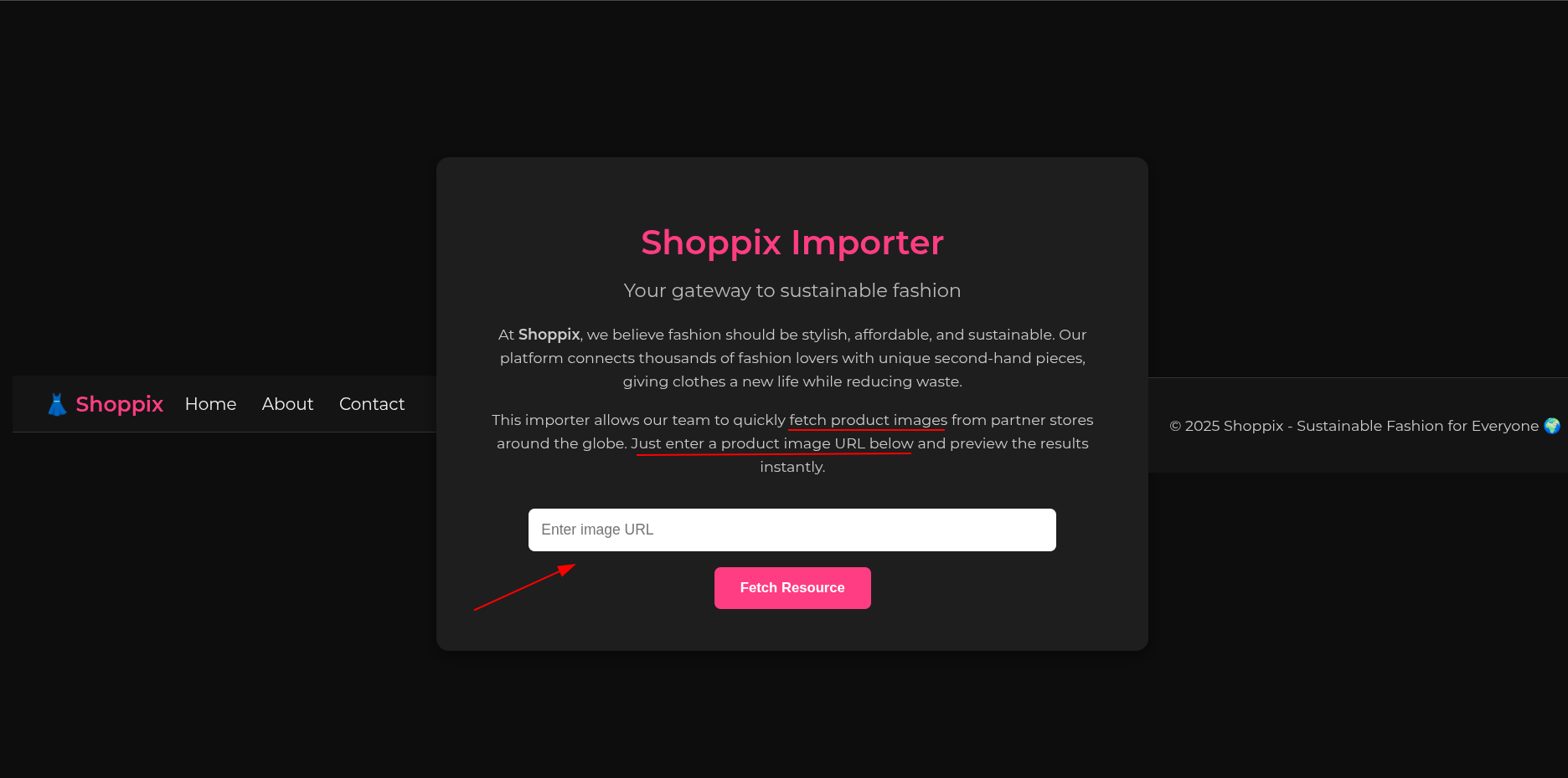 Facing the challenge, we are presented with a simple page that allows us to fetch and render images from a given URL.